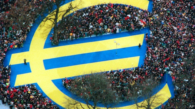 The birth of the euro on January 1st 1999 was at once unifying and divisive. It united Europe’s leaders, who hailed a new era of tighter integration, easier trade and faster growth, thinking they were building a currency to rival the dollar. But the euro divided economists, some of whom warned that binding Europe’s disparate economies to a single monetary policy was an act of historic folly. They preferred a comparison with emerging markets, whose dependence on distant central banks fosters frequent crises. Milton Friedman predicted that a downturn in the global economy could pull the new currency apart.